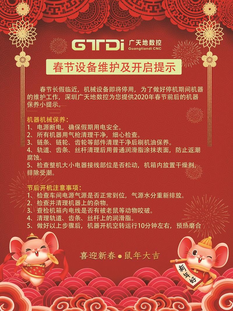 2020年春节期间雕刻机和光纤机设备维护及开启提示